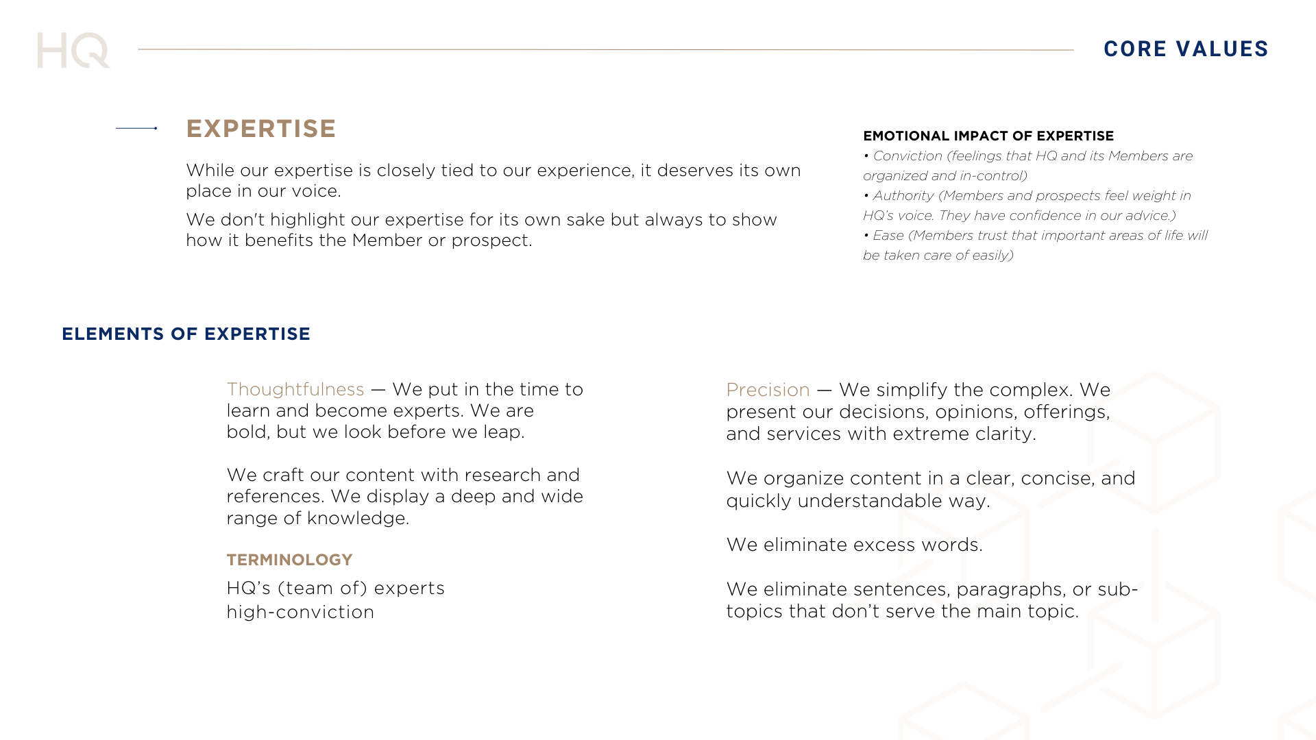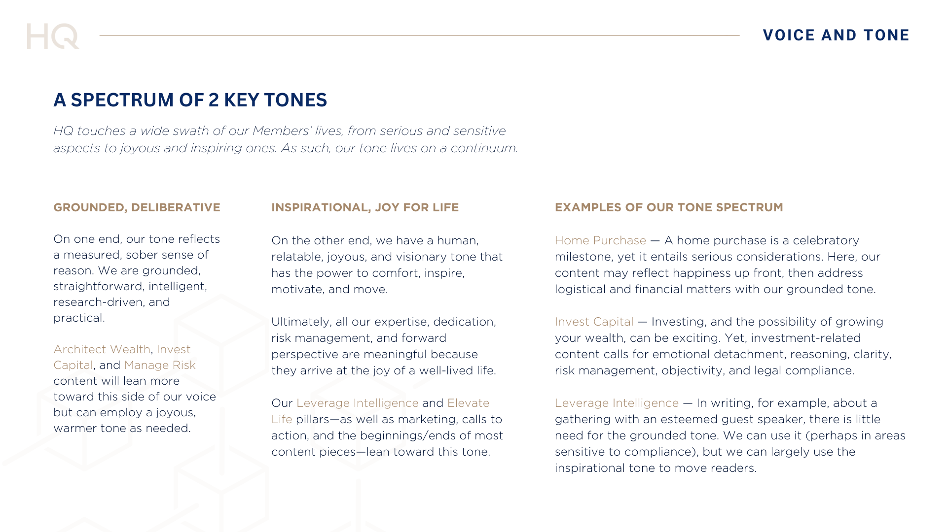HQ's voice and tone guide defined the brand's identity across its content ecosystem.